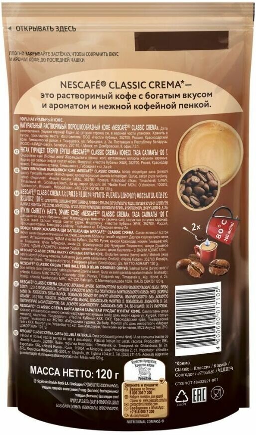NESCAFE Кофе растворимый Classic Crema, пакет, 120 гр