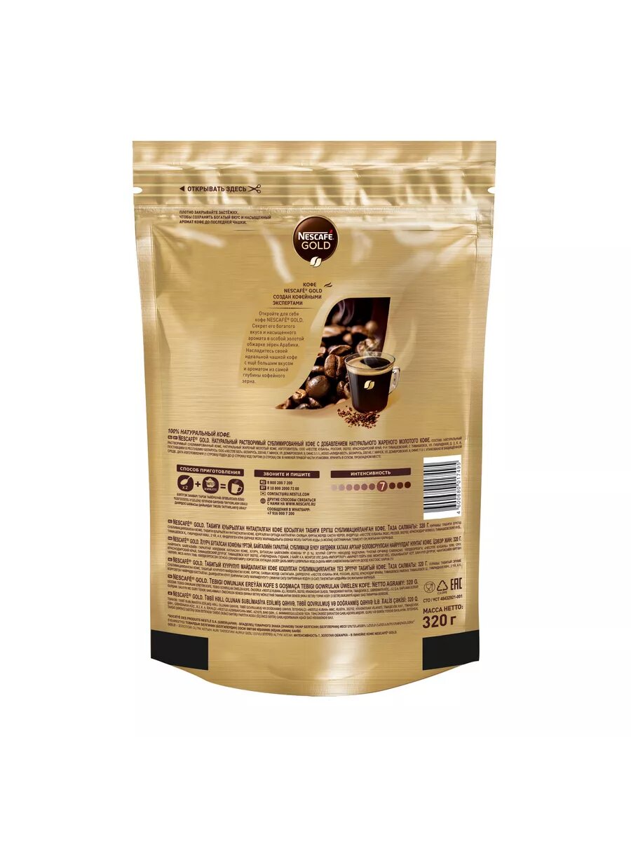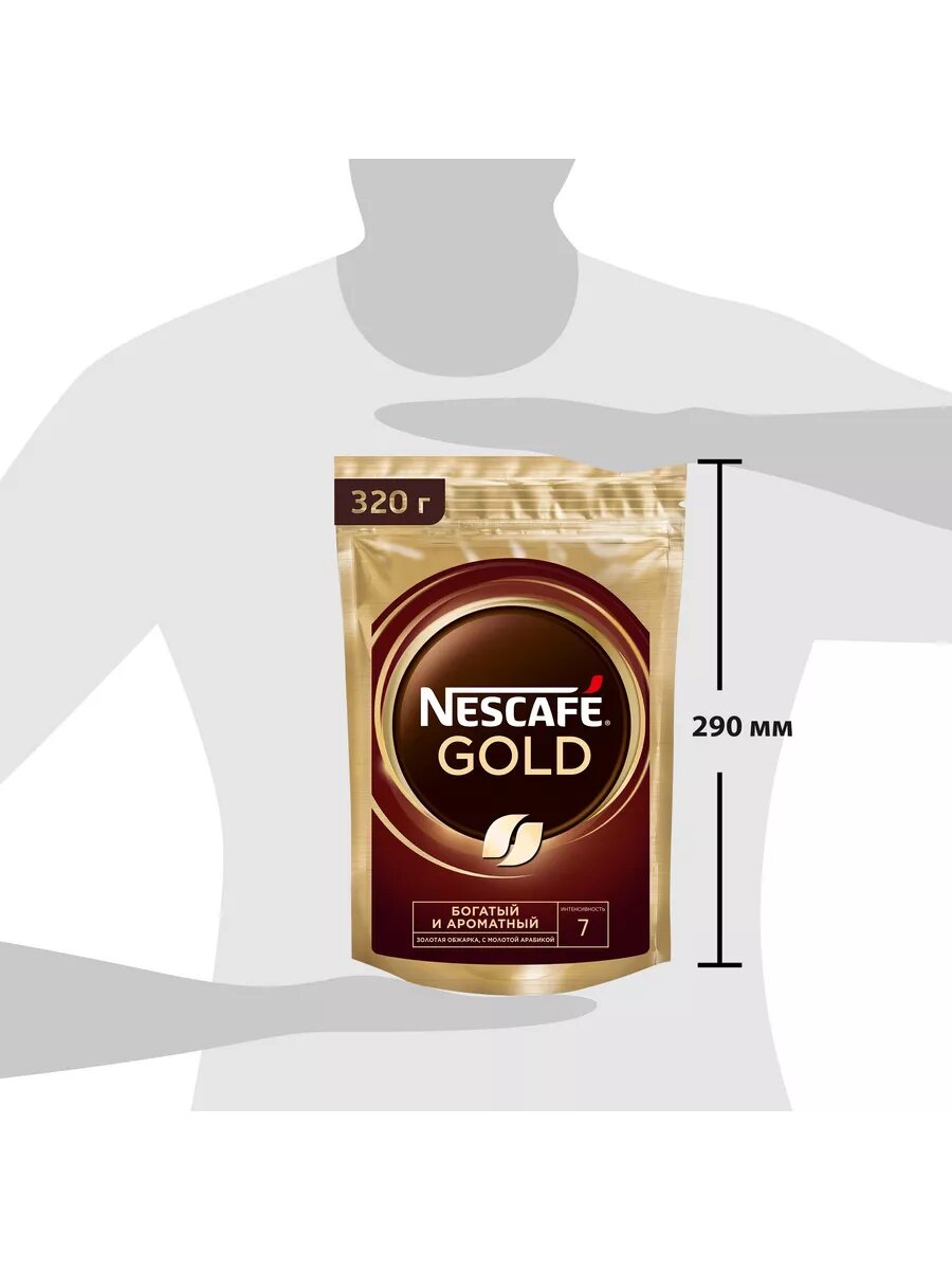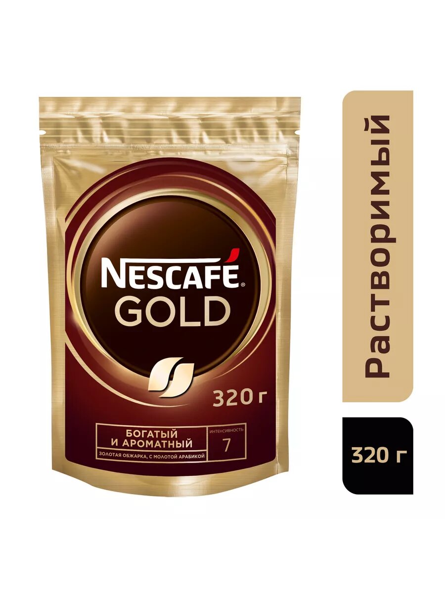 NESCAFÉ Gold, 100% натуральный растворимый сублимированный кофе с добавлением натурального жареного молотого кофе, пакт 320гр