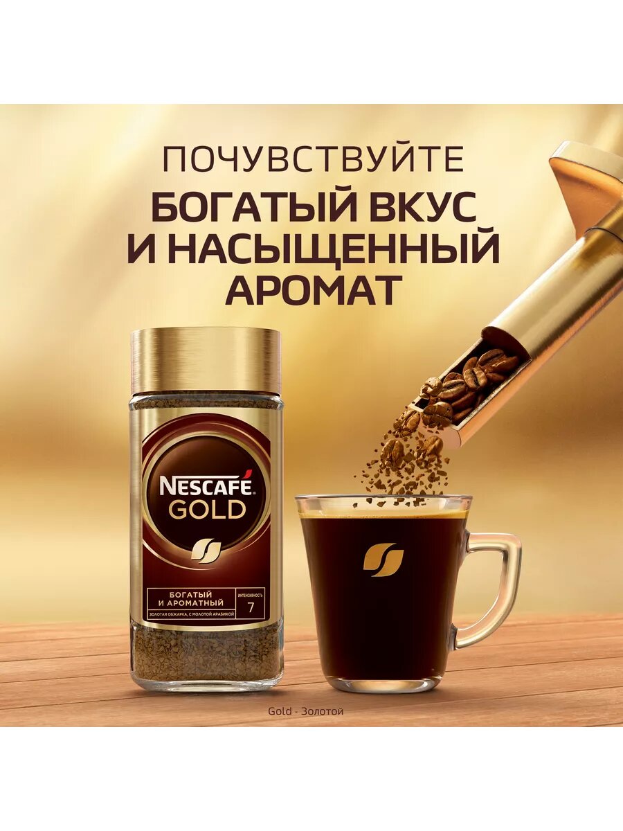 Кофе растворимый Nescafe "Gold", сублимированный, тонкий помол, стеклянная банка, 95г