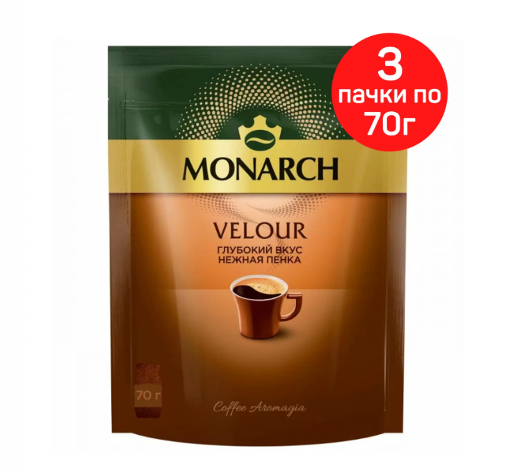 Купить Кофе растворимый Monarch Velour 70 грамм пакет*3
