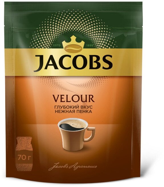 Кофе растворимый Jacobs Velour с пенкой, пакет, 70 г 1776611