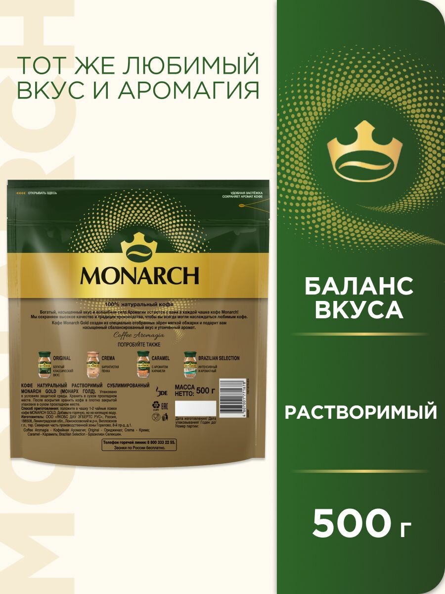 Кофе растворимый Монарх Gold сублимированный, пакет, 500 г