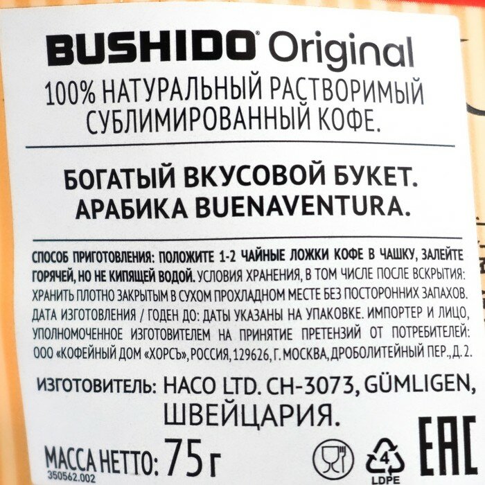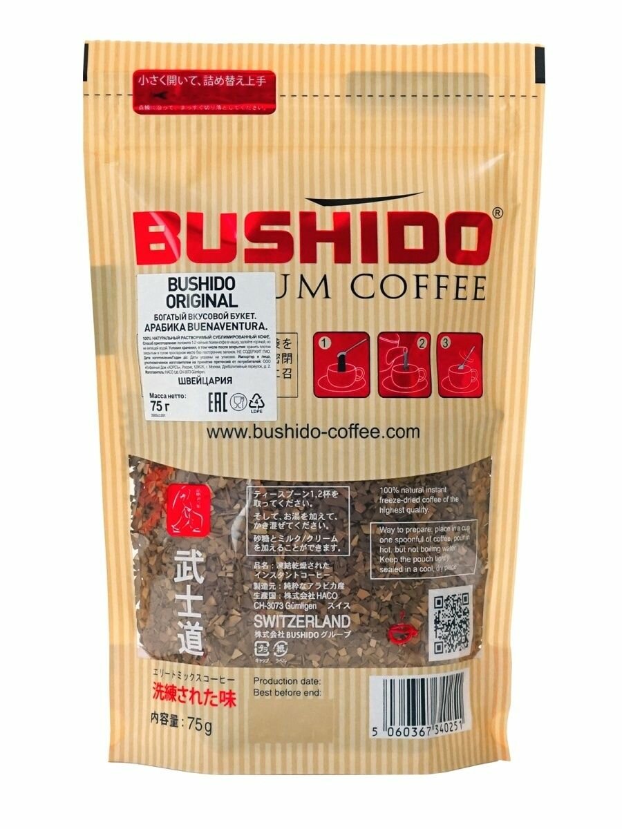 Кофе растворимый ORIGINAL, пакет 75 Г, BUSHIDO
