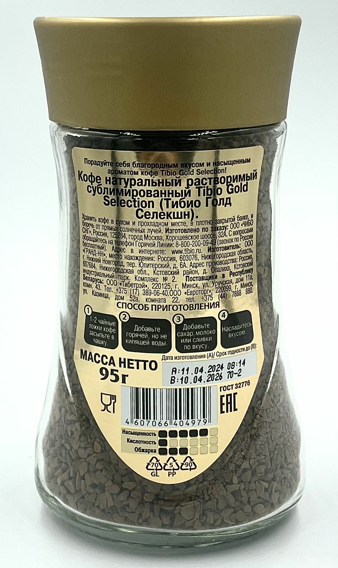 Кофе растворимый сублимированный Tibio Gold Selection,190г.