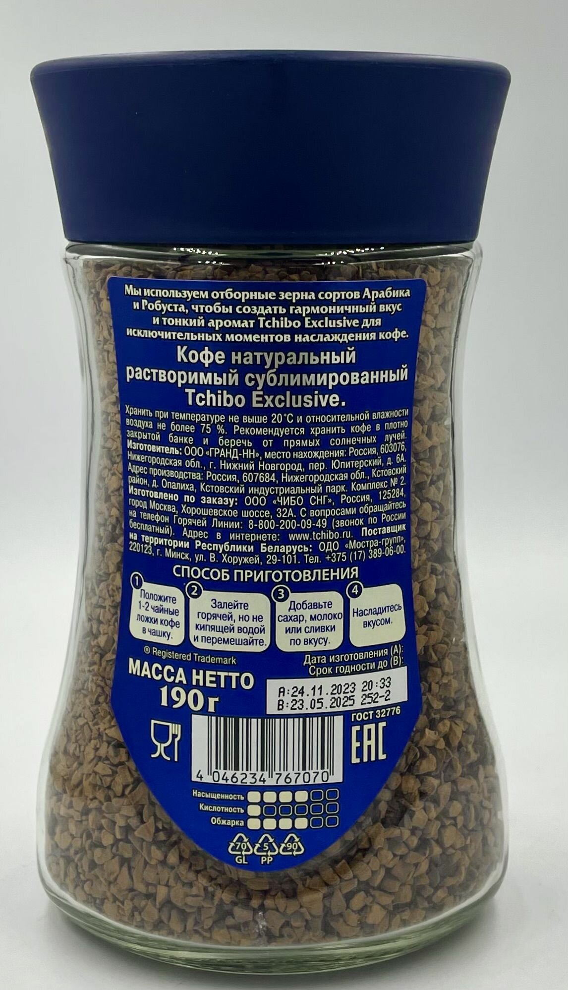 Кофе растворимый Tchibo exclusive, 190 г стеклянная банка (Чибо)