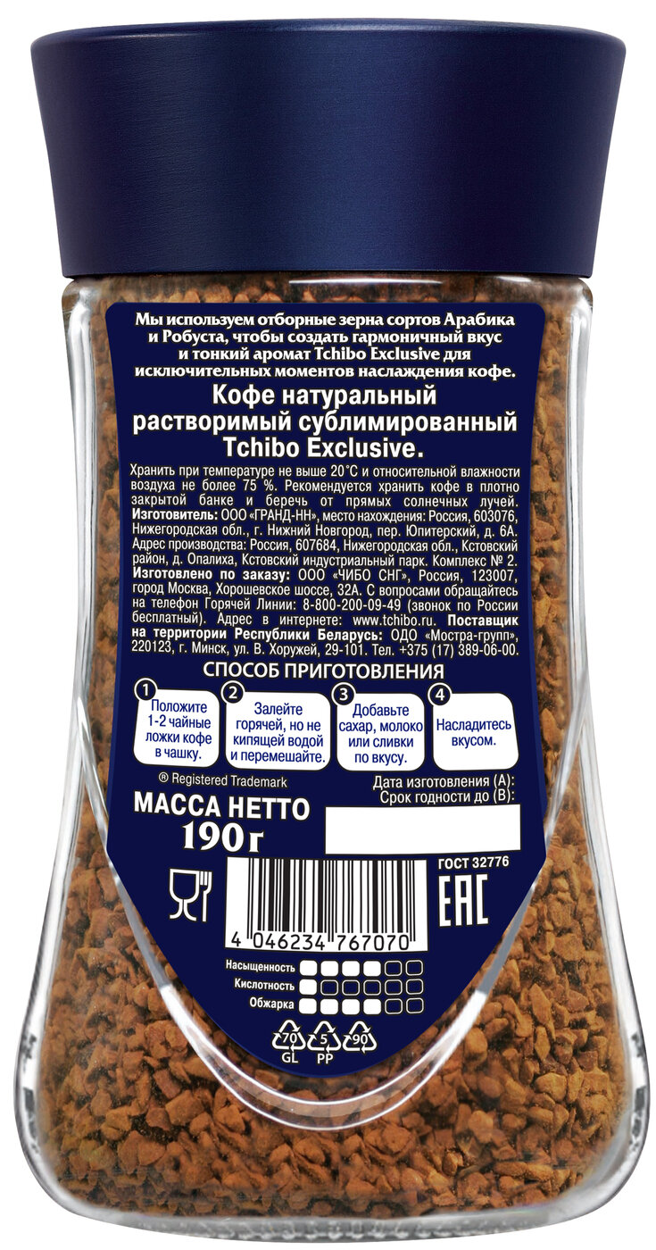 Ниже Вы можете прочитать отзывы на Кофе растворимый Tchibo Exclusive 190 г (стекло), ознакомится с подробными характеристиками, посмотреть интересные обзоры и фотографии на Кофе растворимый Tchibo Exclusive 190 г (стекло).