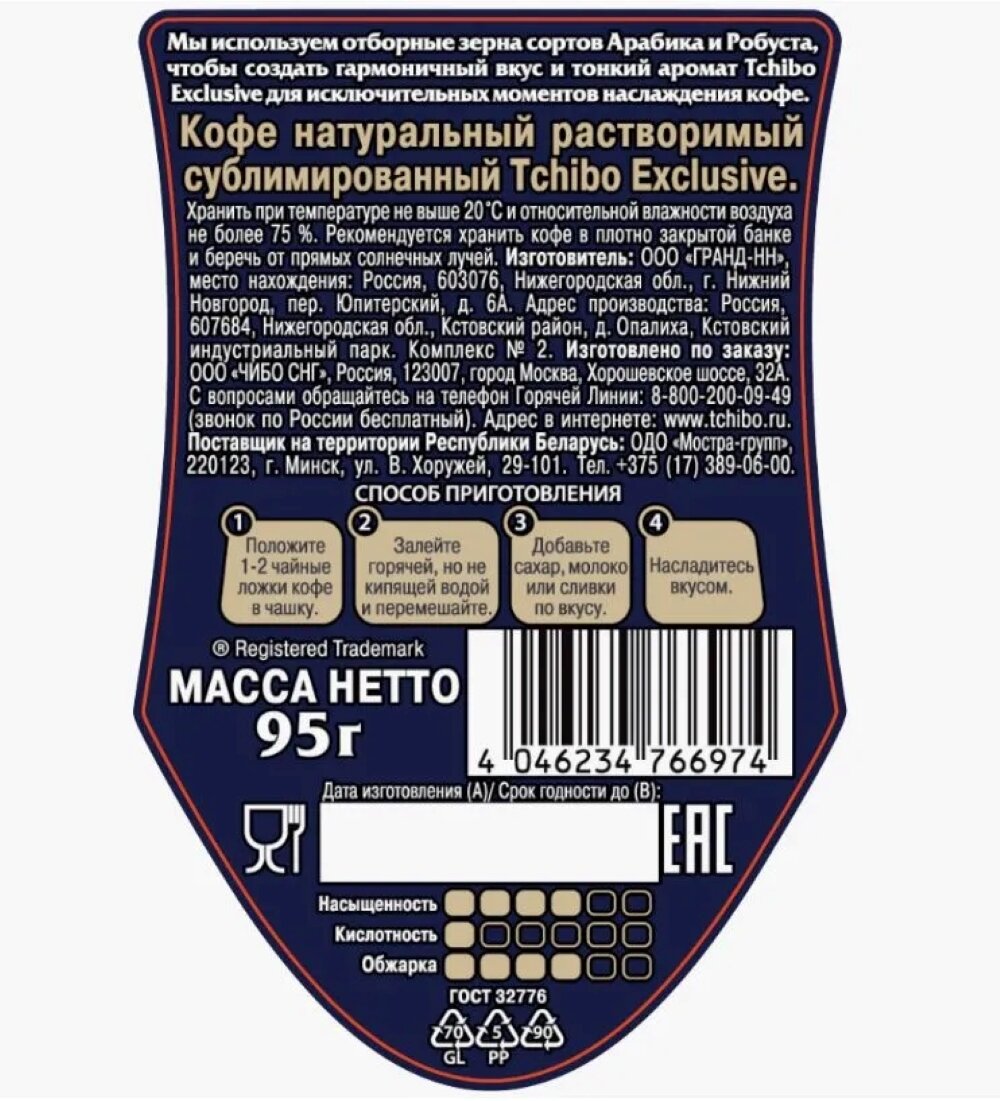 Ниже Вы можете прочитать отзывы на Кофе растворимый Tchibo Exclusive, стеклянная банка, 95 г, ознакомится с подробными характеристиками, посмотреть интересные обзоры и фотографии на Кофе растворимый Tchibo Exclusive, стеклянная банка, 95 г.