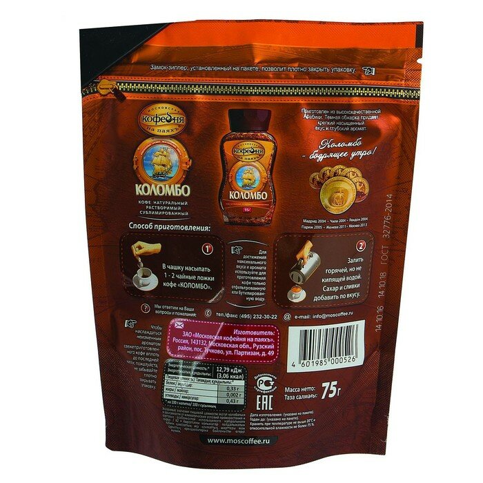 Московская кофейня на паяхъ Коломбо кофе рaстворимый, пакет 95 г