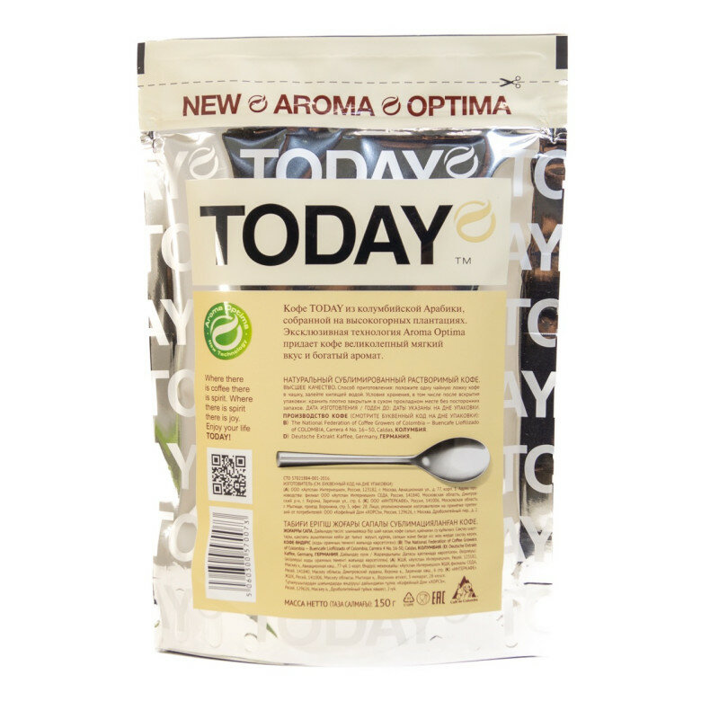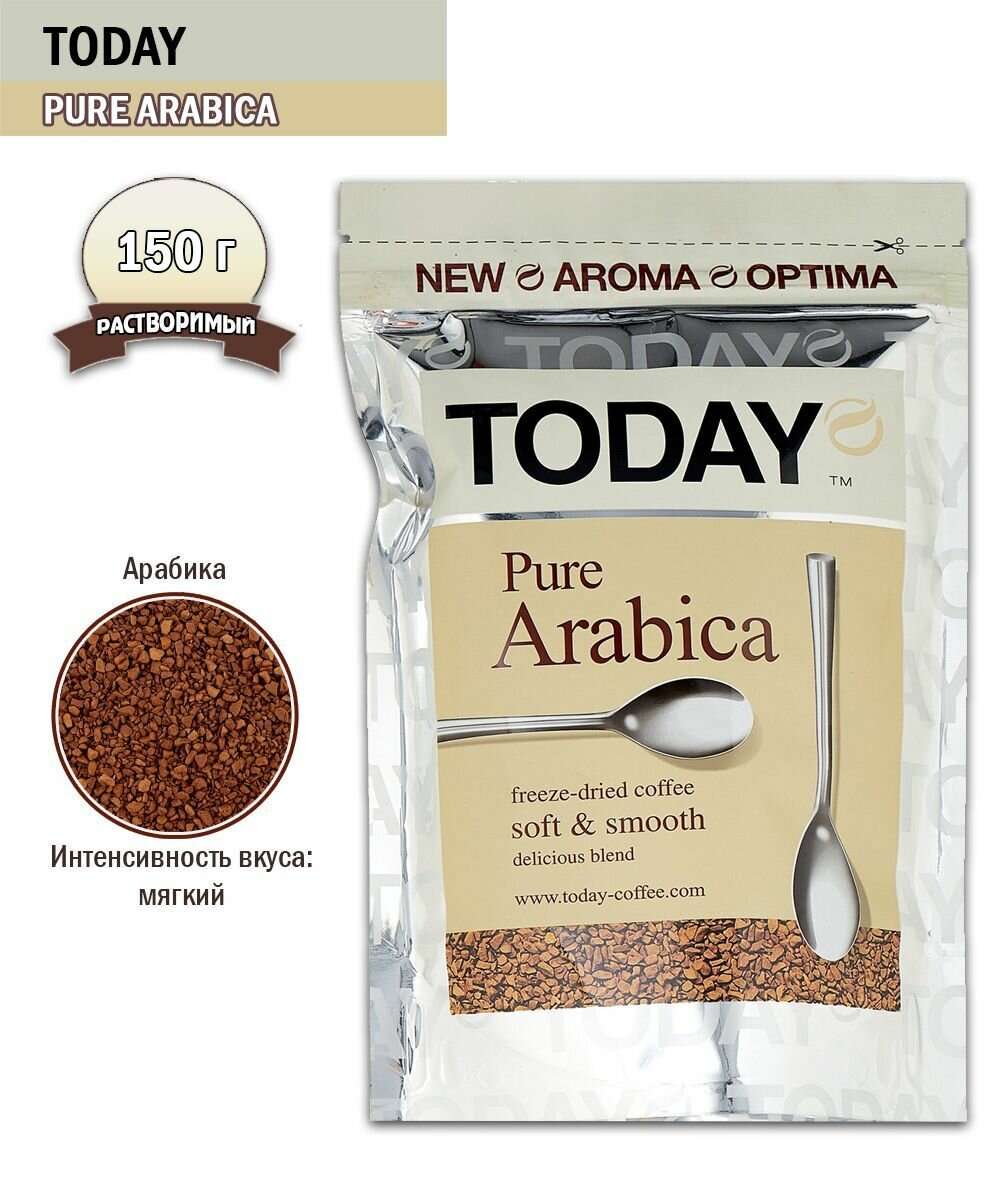 Кофе растворимый TODAY "Pure Arabica", сублимированный, 150 г, 100% арабика, мягкая упаковка, 9962