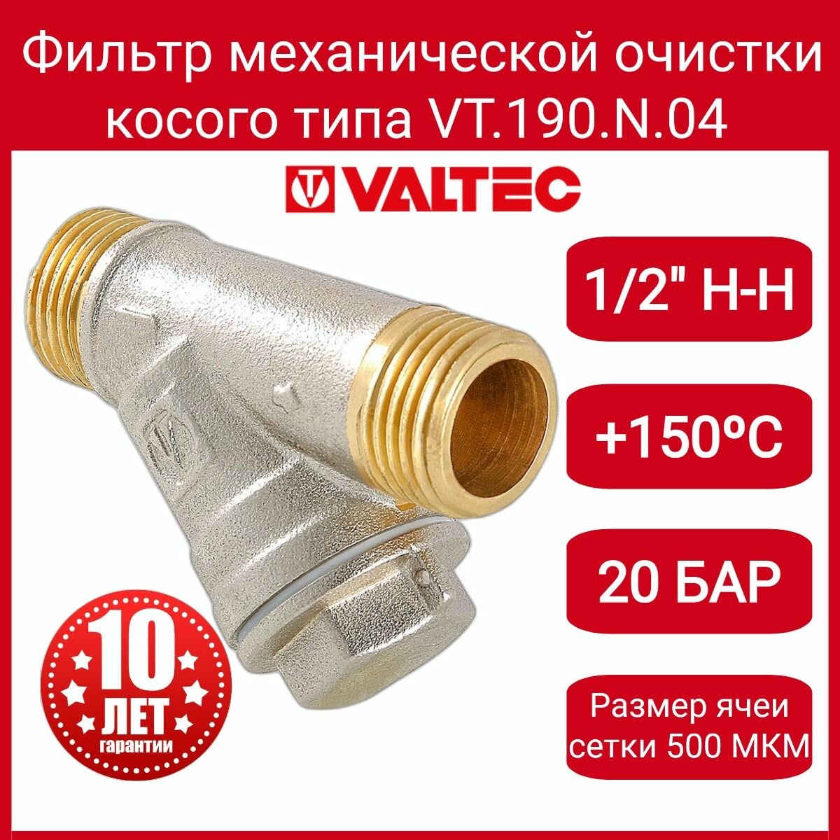 Фильтр косой Valtec (VT.190.N.04) 1/2 НР(ш) х 1/2 НР(ш)