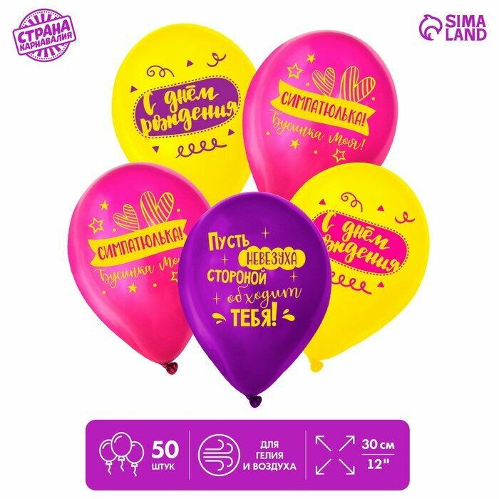 Шар латексный 12 С днeм рождения, симпатюлька, 50 шт интересное: