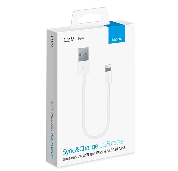Кабель Deppa USB - Lightning 1.2м 2A White (Арт.72114)