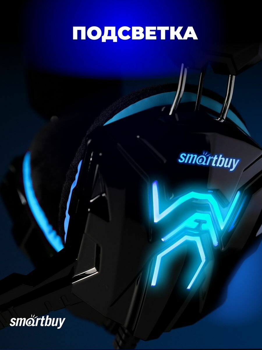 Игровая гарнитура Smartbuy RUSH SNAKE Blue (проводная, микрофон, USB/2х3.5 мм, подсветка)