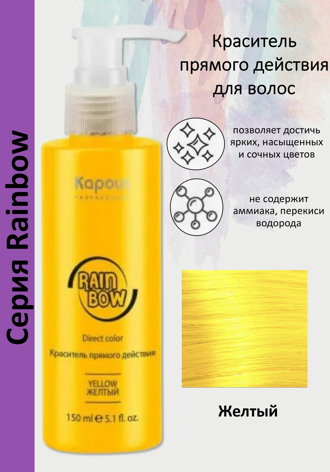 СохранитьKapous Professional Краситель прямого действия для волос Rainbow Желтый 150мл интересное: