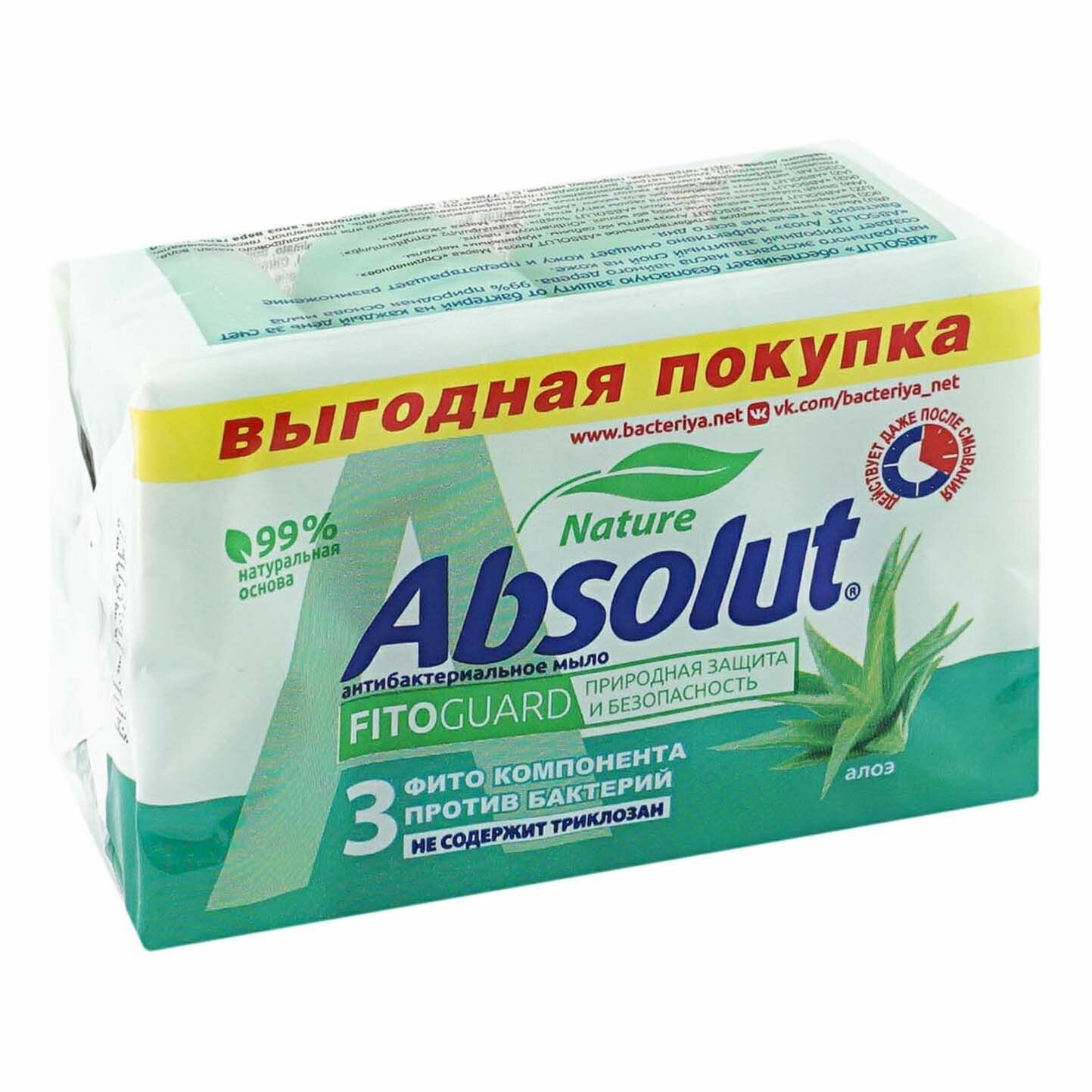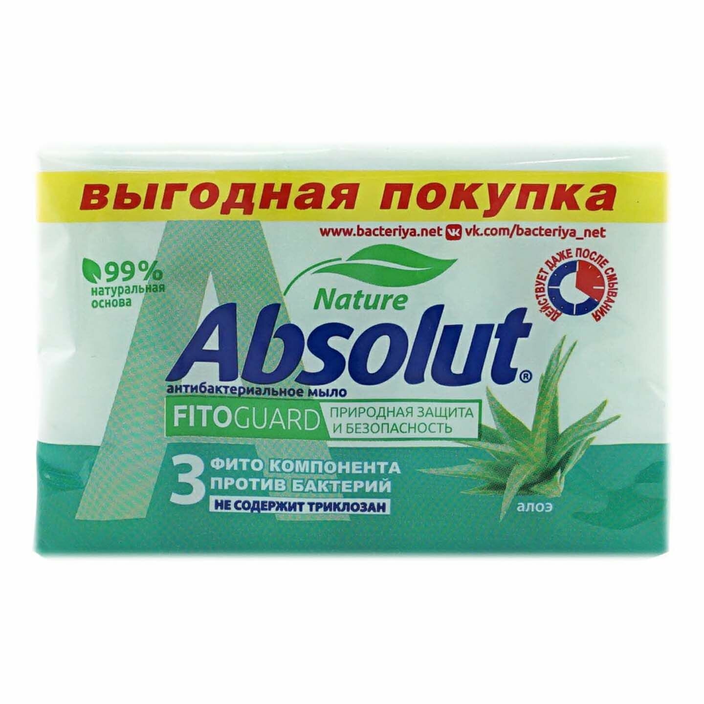 СохранитьМыло туалетное антибактериальное 300г ABSOLUT (Абсолют) комплект 4шт х75г "Алоэ",без триклозана,6065 интересное: