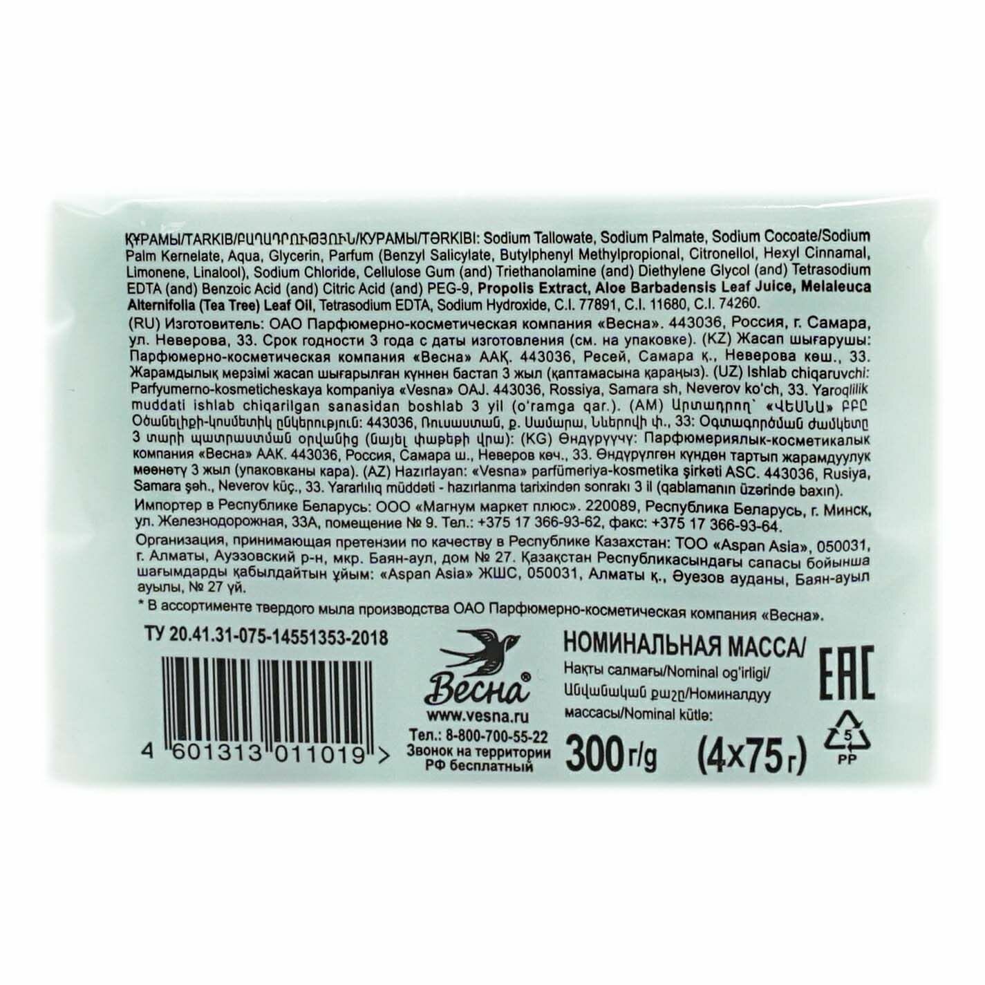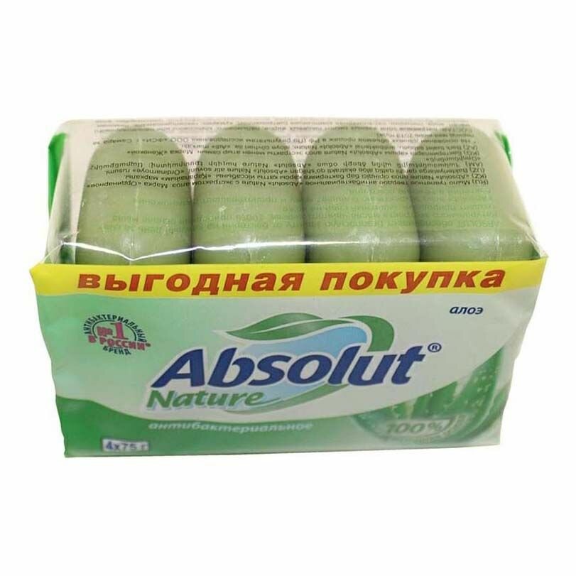 Мыло туалетное антибактериальное 300 г ABSOLUT (Абсолют) комплект 4 шт. х 75 г "Алоэ",без триклозана, 6065, 600762