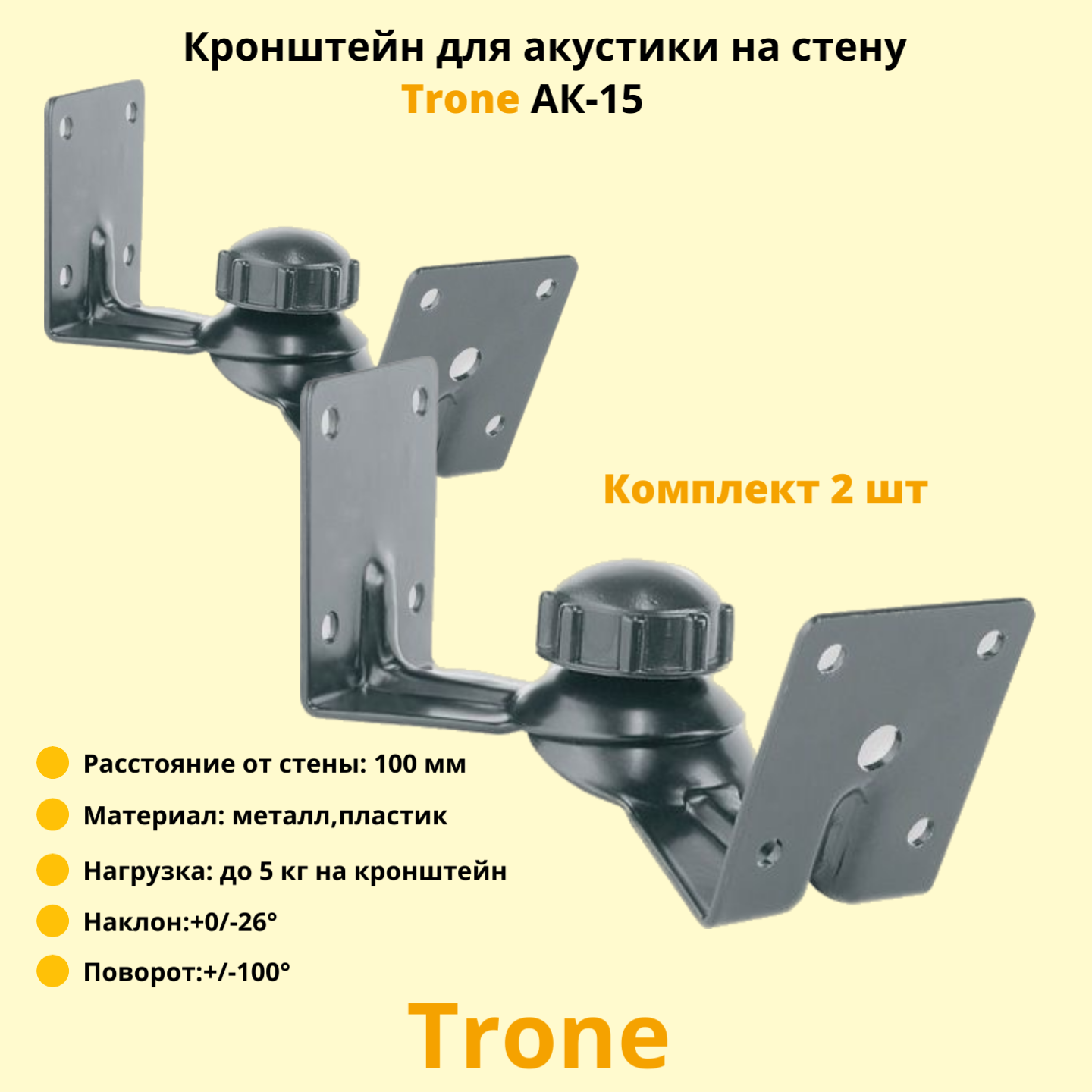 Кронштейн для акустических систем Trone AK-15 настенный до 5кг - 2 шт. в упаковке, чёрный
