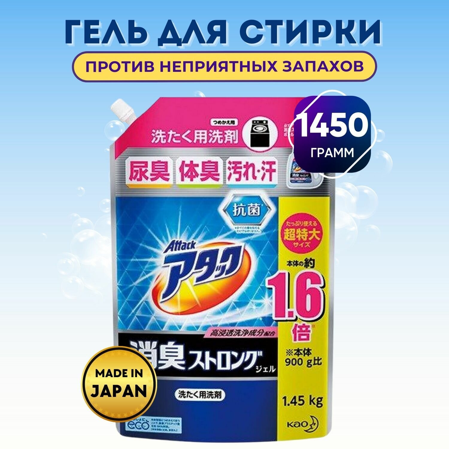 Купить KAO Жидкое средство "Attack Deodorant Strong Gel" для стирки (с ярким мятно-травяным ароматом, против неприятных запахов) 1450 г, мягкая упаковка с крышкой