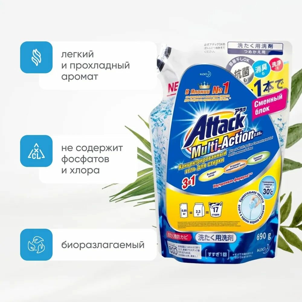 ATTACK Гель для стирки Multi-Action (сменный блок) 690мл