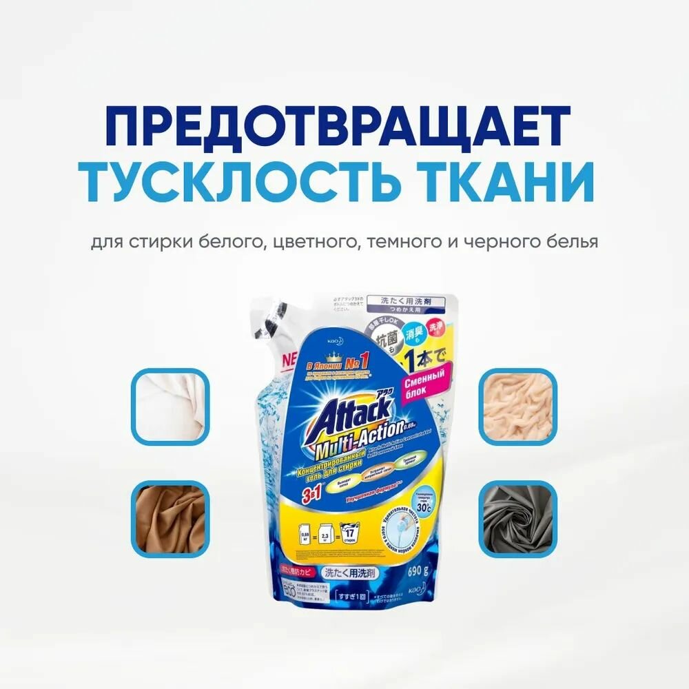 Жидкое средство для стирки KAO Attack Multi-Action универсальное 690 г мягкая упаковка