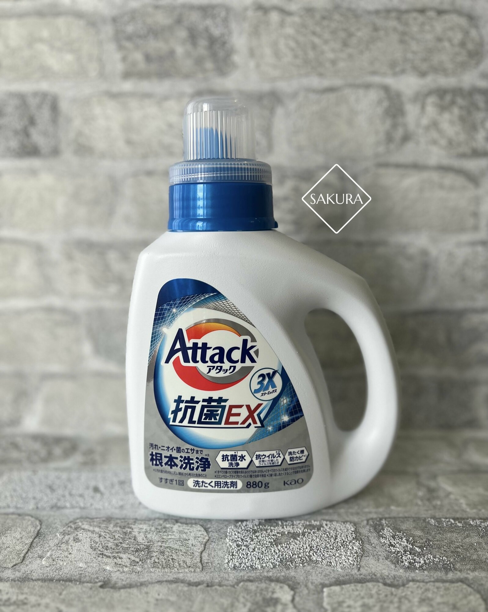 KAO Attack Antibacterial EX Жидкое средство для стирки белья, с антибактериальным эффектом, с ароматом свежей зелени, бутылка с колпачком-дозатором, 880г.