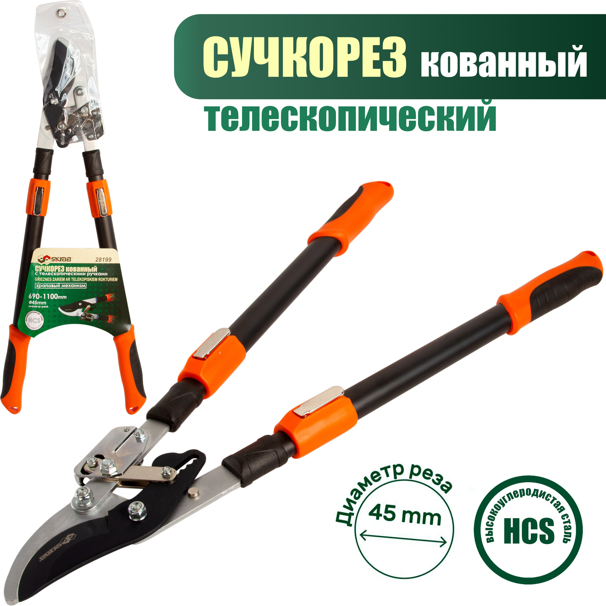 Сучкорез Кованный телескопический плоскостной 690-1100 мм храповый Сталь HCS Skrab 28199