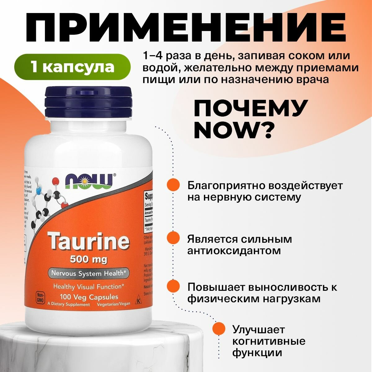 Taurine 500 mg NOW (100 вег кап) интересное: