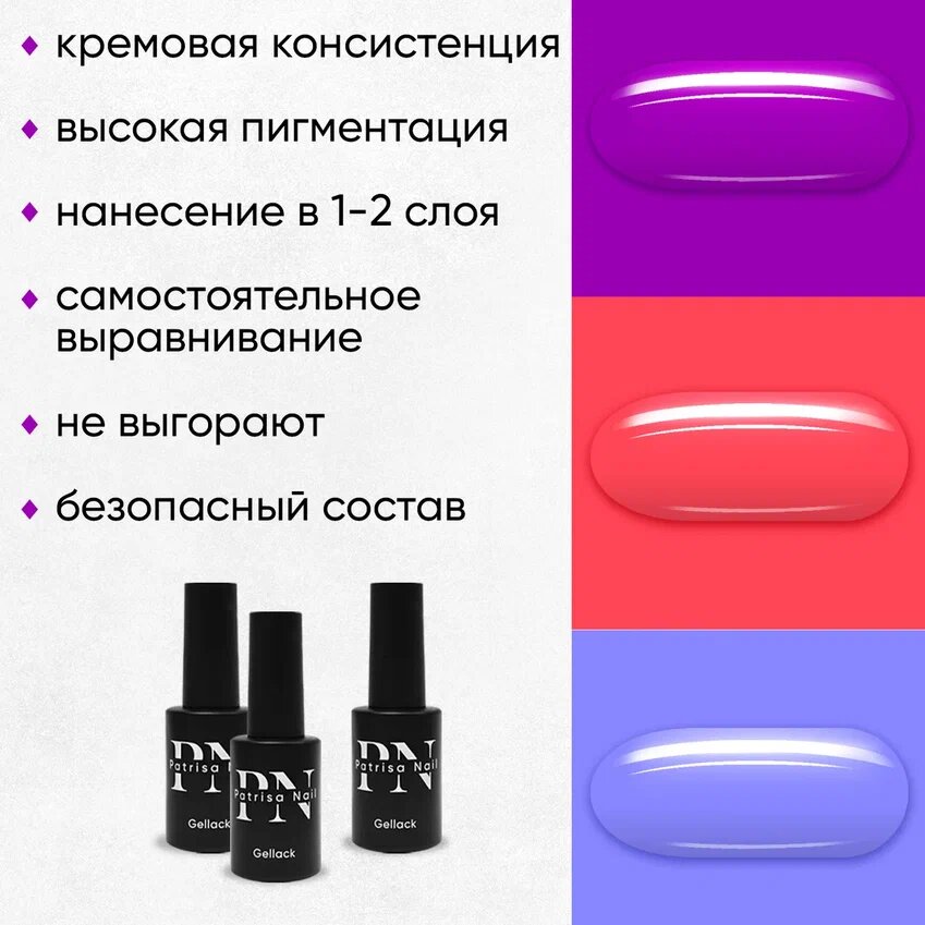 Гель-лак Patrisa Nail №124 Pina Colada GP24 Неоновая сирень, 8 мл