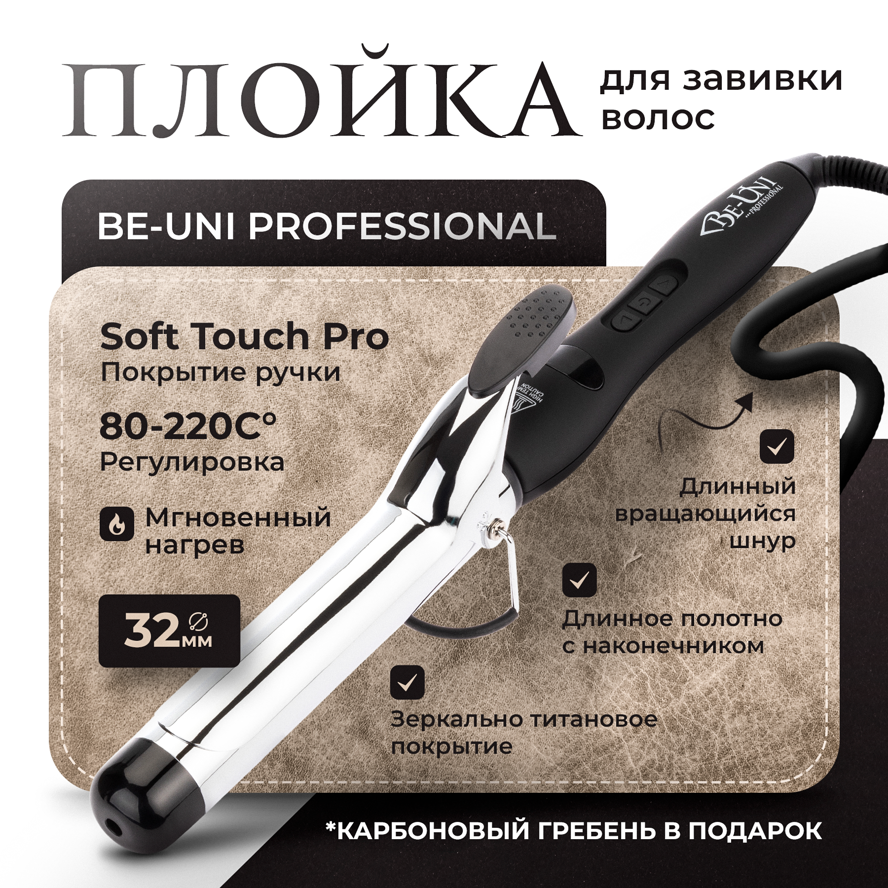 СохранитьПлойка для укладки волос Be-Uni Titan Curler с зеркальным титановым покрытием 32 мм интересное: