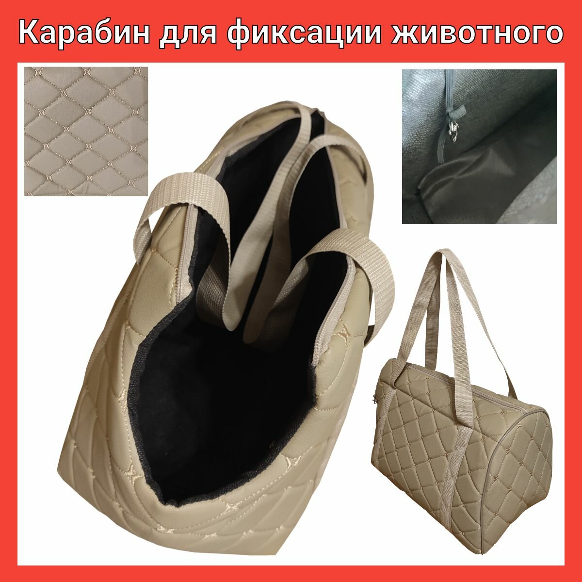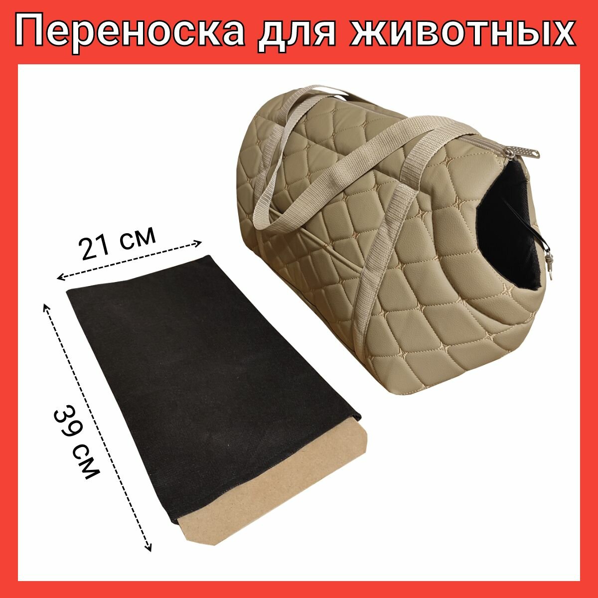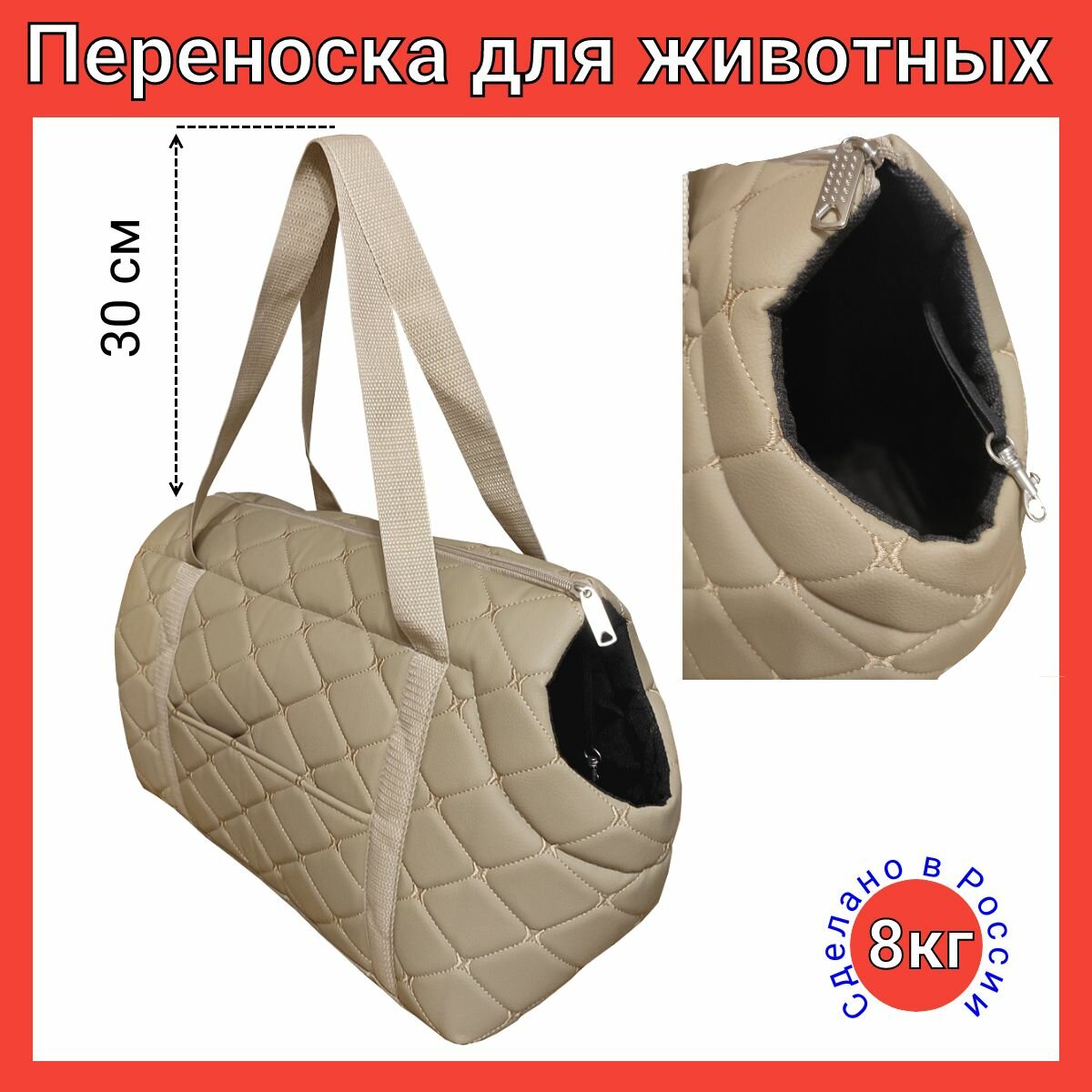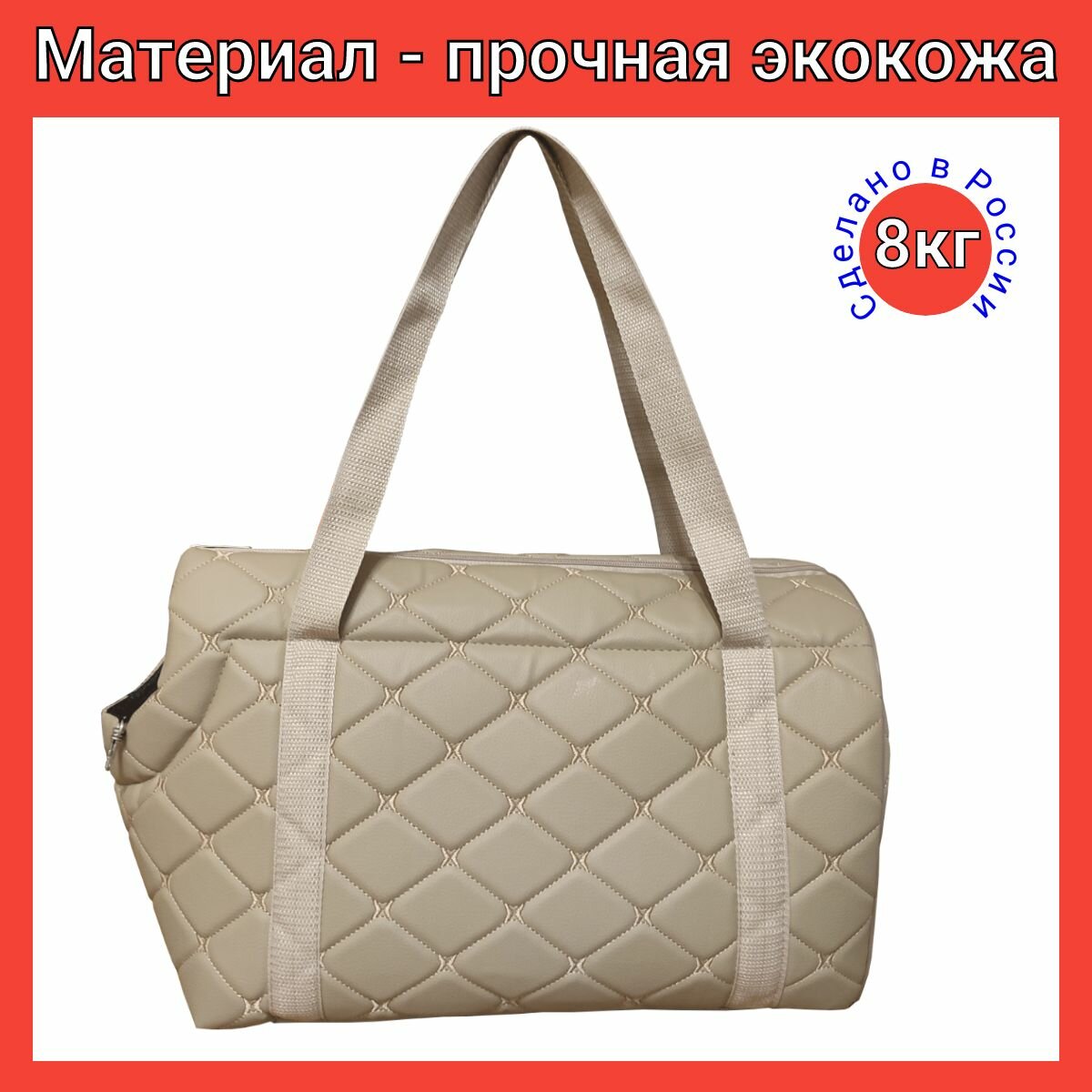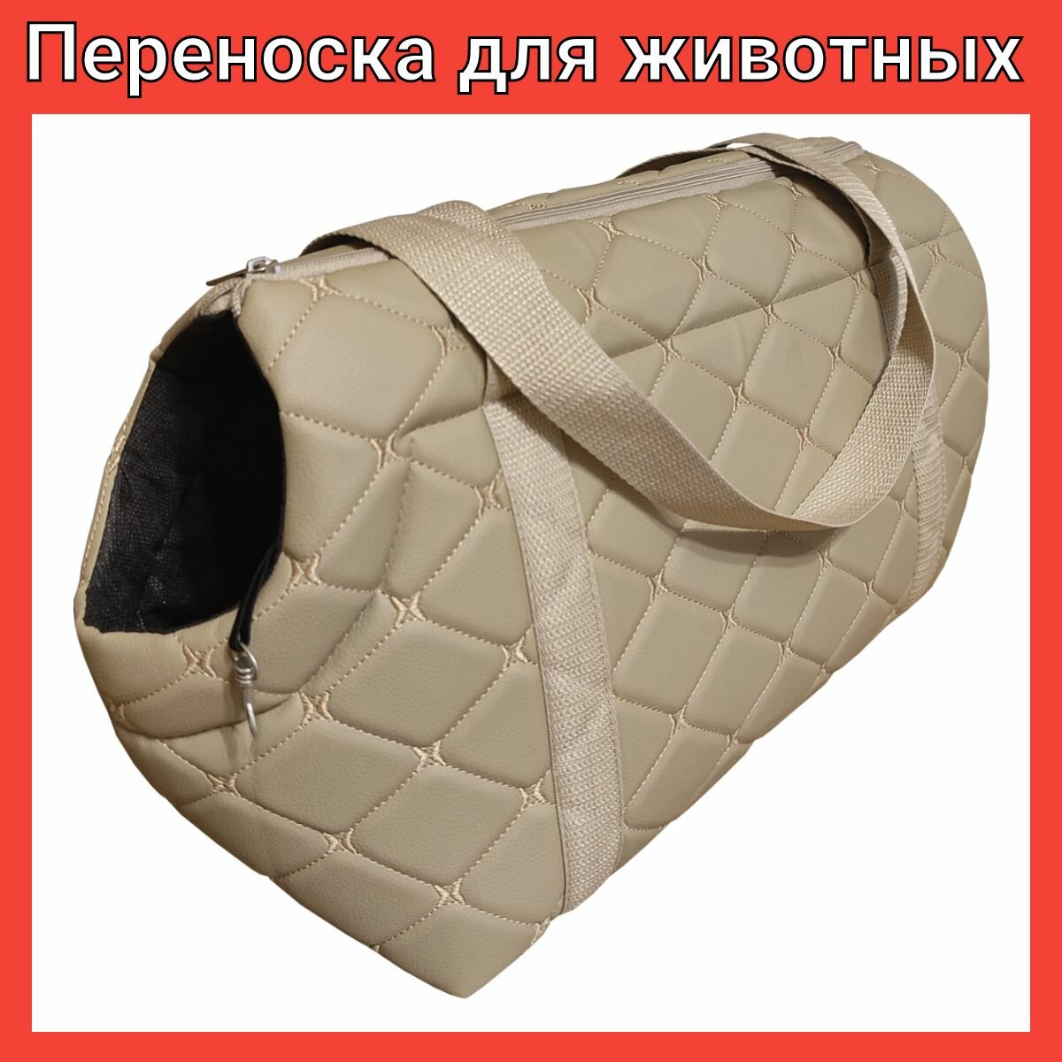 Сумка переноска для кошек и собак, животных до 3 кг, мягкая с горлом Теремок, экокожа ромб, 37*15*22 см.