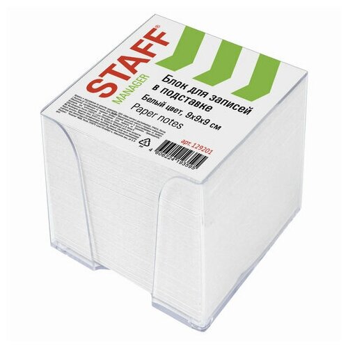 Блок для записей STAFF в подставке прозрачной, куб 9х9х9 см, белый, белизна 90-92%, 129201, 129201