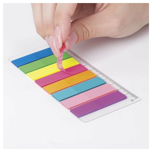 Закладки/стикеры клейкие самоклеящиеся для книг и ежедневника Brauberg Неоновые пластиковые, 45х12 мм, 8 цветов х 25 листов, на линейке 12 см