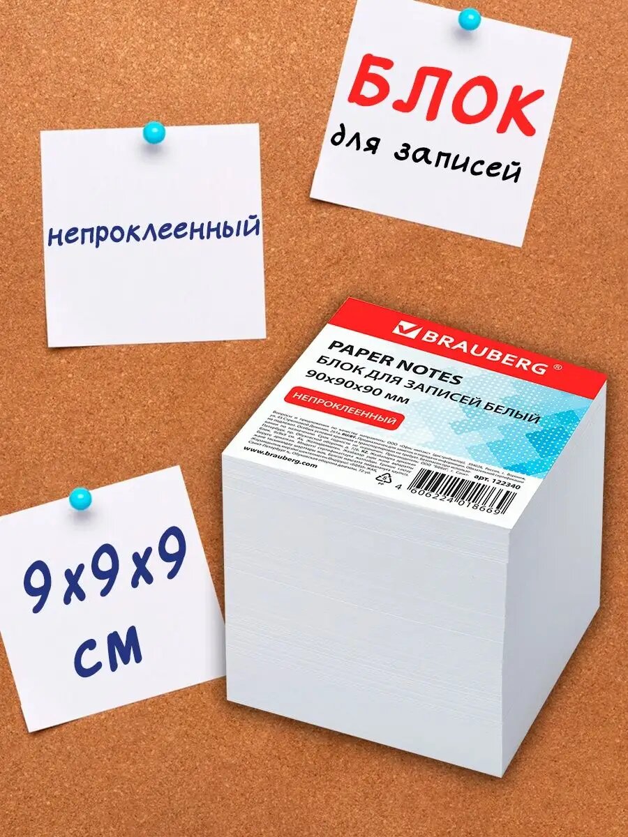 Блок для записей BRAUBERG, непроклеенный, куб 9х9х9 см, белый, белизна 95-98%, 122340 В комплекте: 1шт.