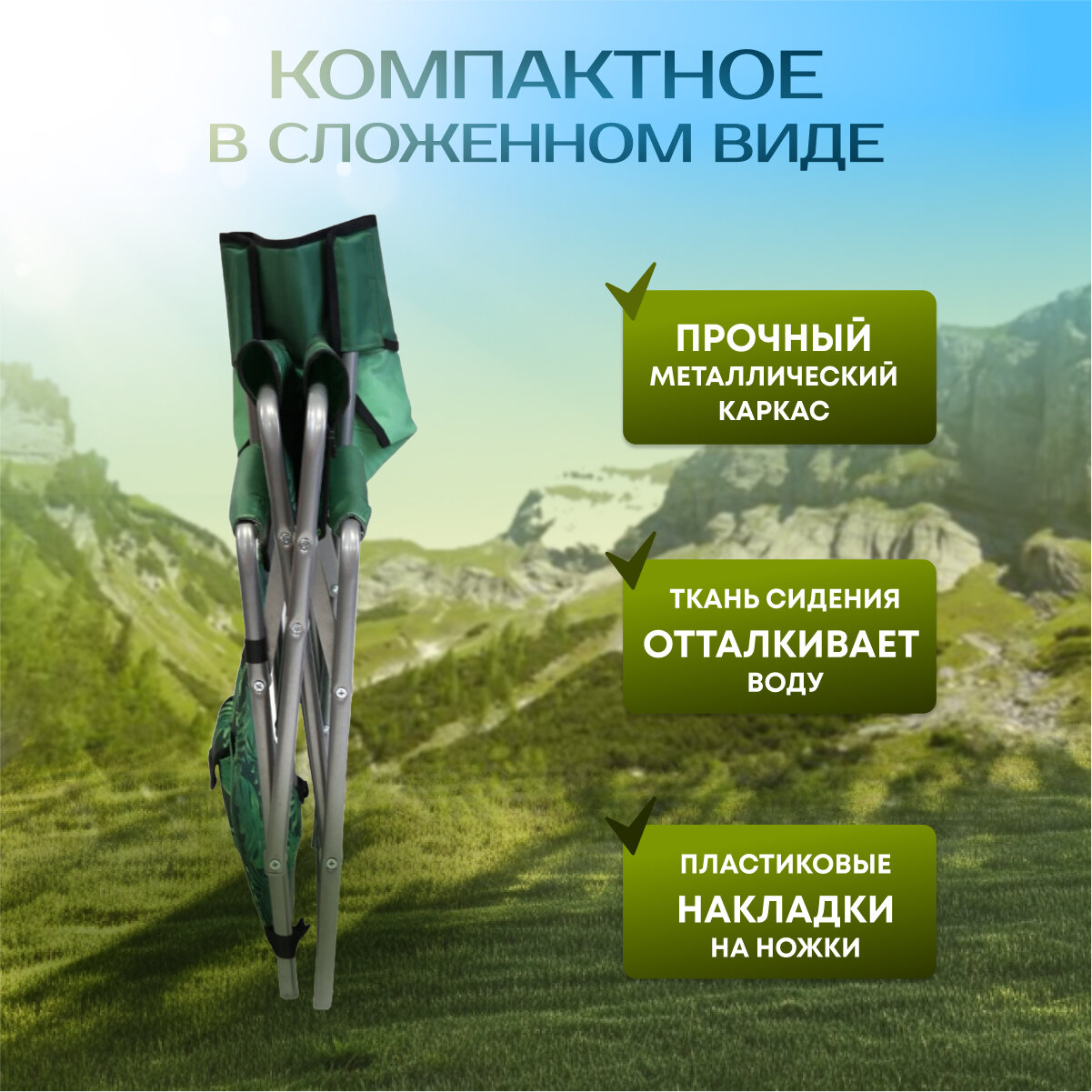 Кресло складное 50х50х75 см, зеленое, тропические листья, ткань водоотталкивающая, с карманом, 100 кг, Nika, КС1/2