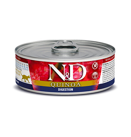 Корм для кошек FARMINA N&D Quinoa с киноа, для поддержки пищеварения банка 80г (упаковка - 12 шт)
