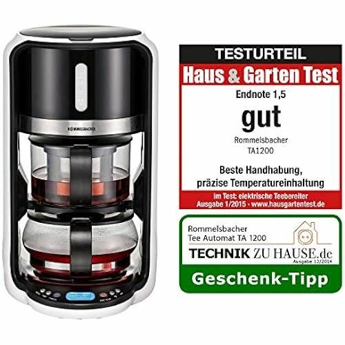Ниже Вы можете прочитать отзывы на Чайная машина ROMMELSBACHER TA 1200 5 программ, 4 температуры заваривания (80/85/90/100 C), время заваривания до 10 минут, функция подогрева, отсрочка запуска, стеклянный чайник, ситечко для чая из нержавеющей стали, 1200 Вт Энергия Класс Б, ознакомится с подробными характеристиками, посмотреть интересные обзоры и фотографии на Чайная машина ROMMELSBACHER TA 1200 5 программ, 4 температуры заваривания (80/85/90/100 C), время заваривания до 10 минут, функция подогрева, отсрочка запуска, стеклянный чайник, ситечко для чая из нержавеющей стали, 1200 Вт Энергия Класс Б.