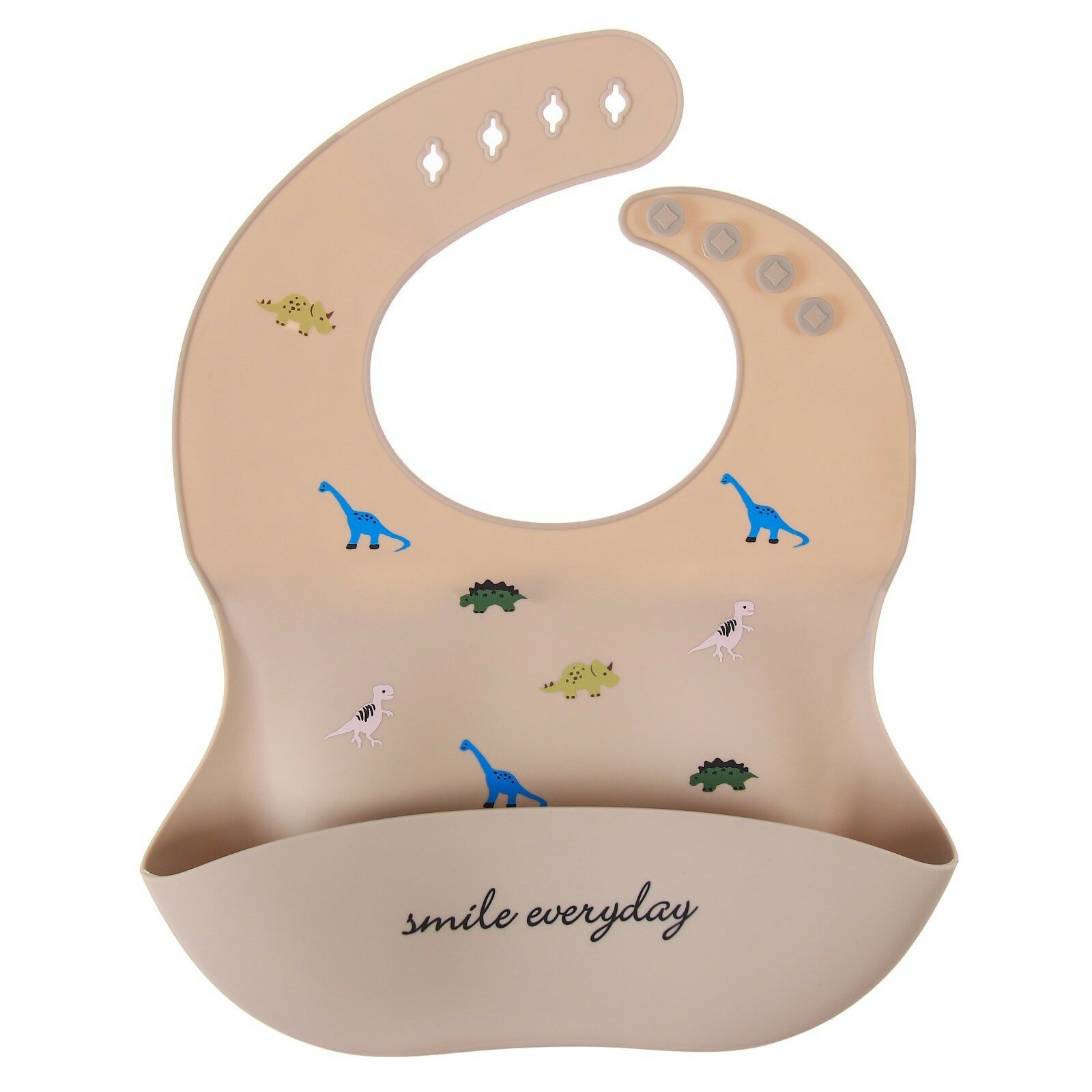 Нагрудник силиконовый, на кнопках, с карманом "Динозаврики", цвет серый 5385575