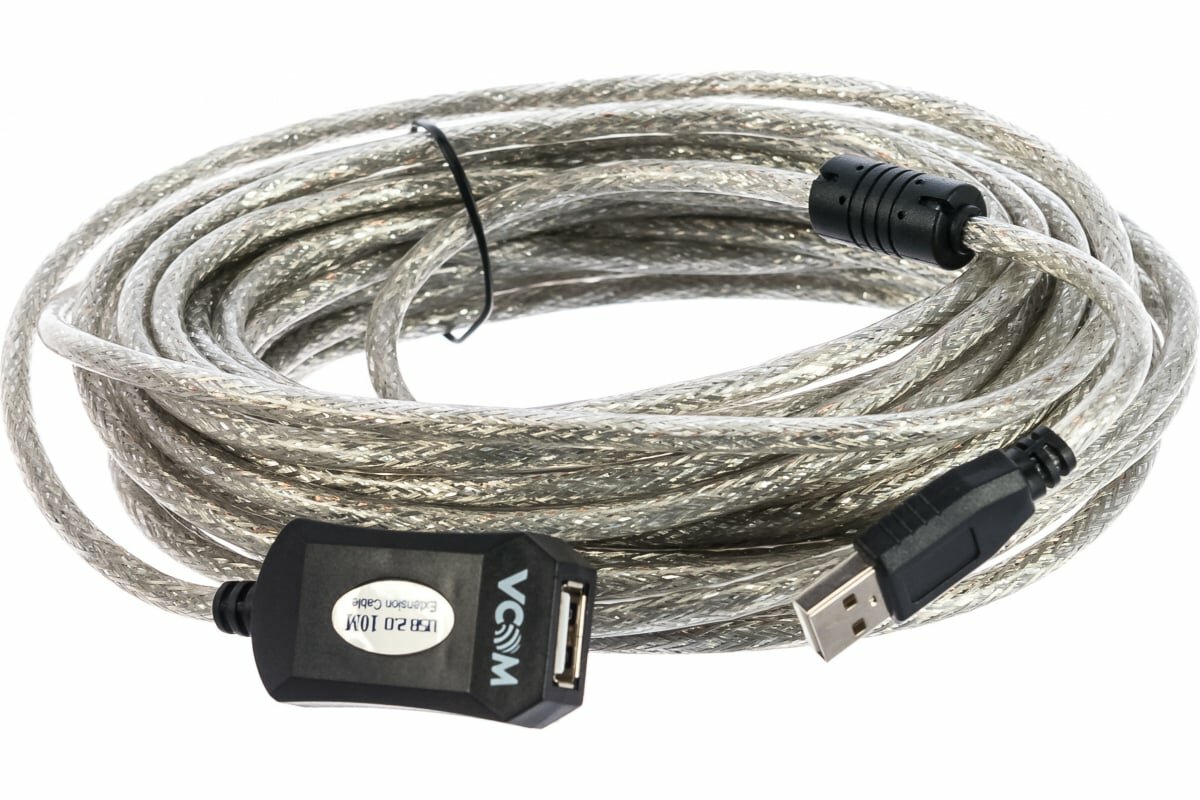 Кабель удлинительный USB2.0 Am-Af 10м VCOM (VUS7049-10M), активный, черный