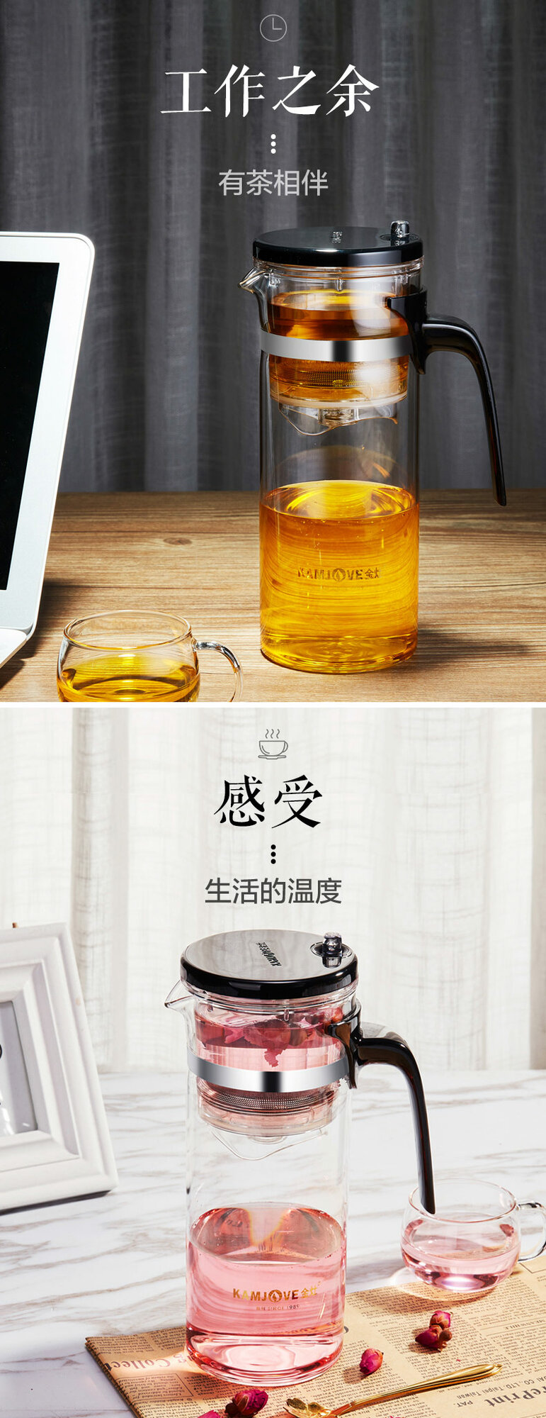 Чайник проливник для китайского чая, 700мл., Kamjove TP-168 со стальным ситом и разборной заварочной колбой интересное: