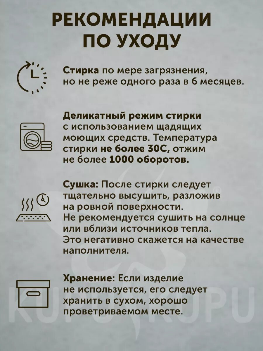 | Отзыв: | Пользуюсь подушкой уже больше года, нигде даже в комки не свалялась, хотя я ее всячески подминаю под себя |