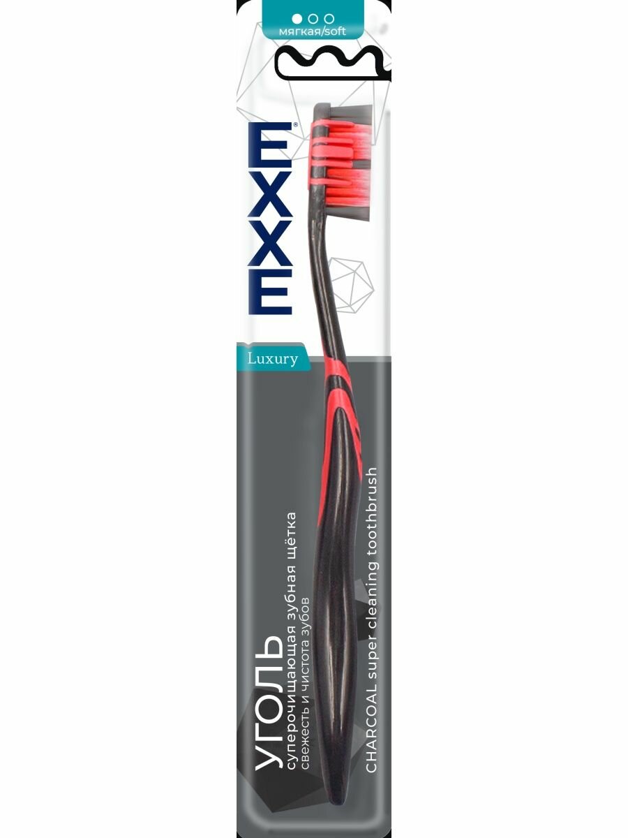 Зубная щетка с угольным покрытием "EXXE Luxury", суперочищающая, мягкая щетина