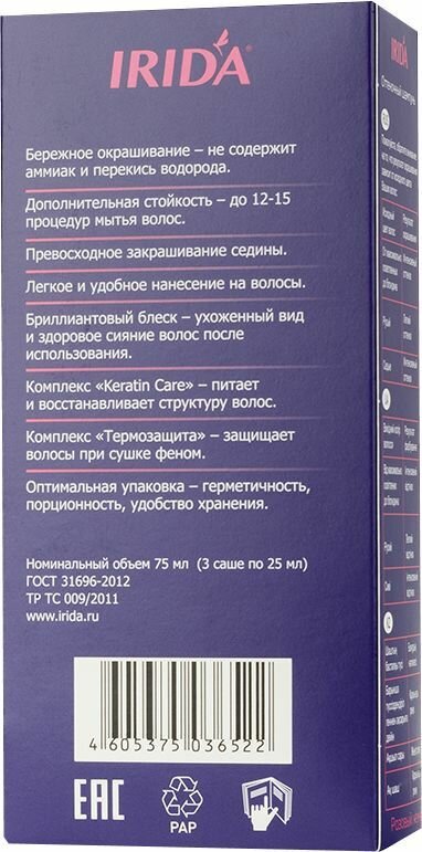 Оттеночный шампунь для волос IRIDA IRIDA.M Оттеночный шампунь Розовый жемчуг 3*25мл Розовый жемчуг