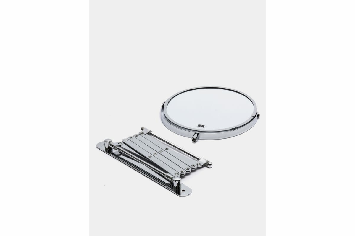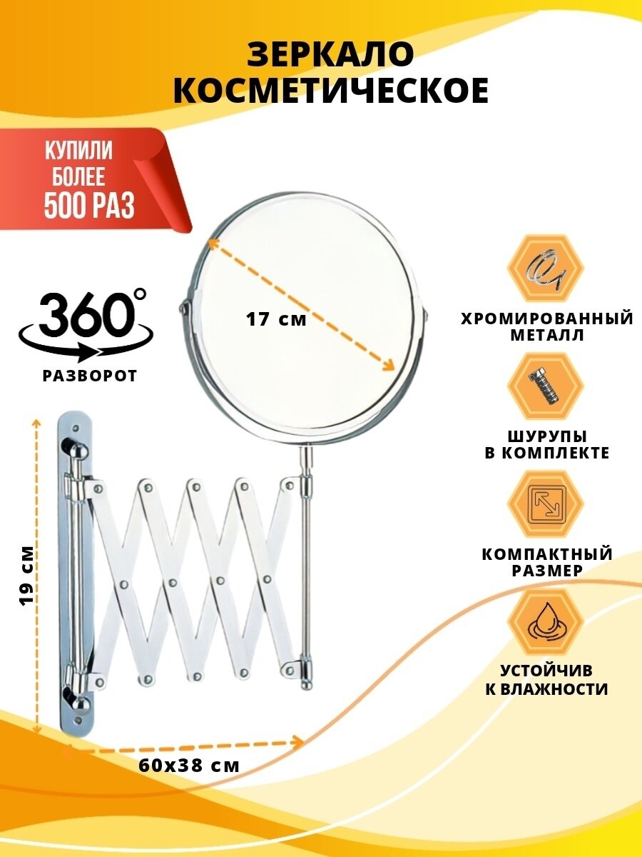 Зеркало настенное косметическое двустороннее на выдвижной штанге диаметр 17 см, 5 кратное увеличение. Поворот вокруг оси на 360 градусов