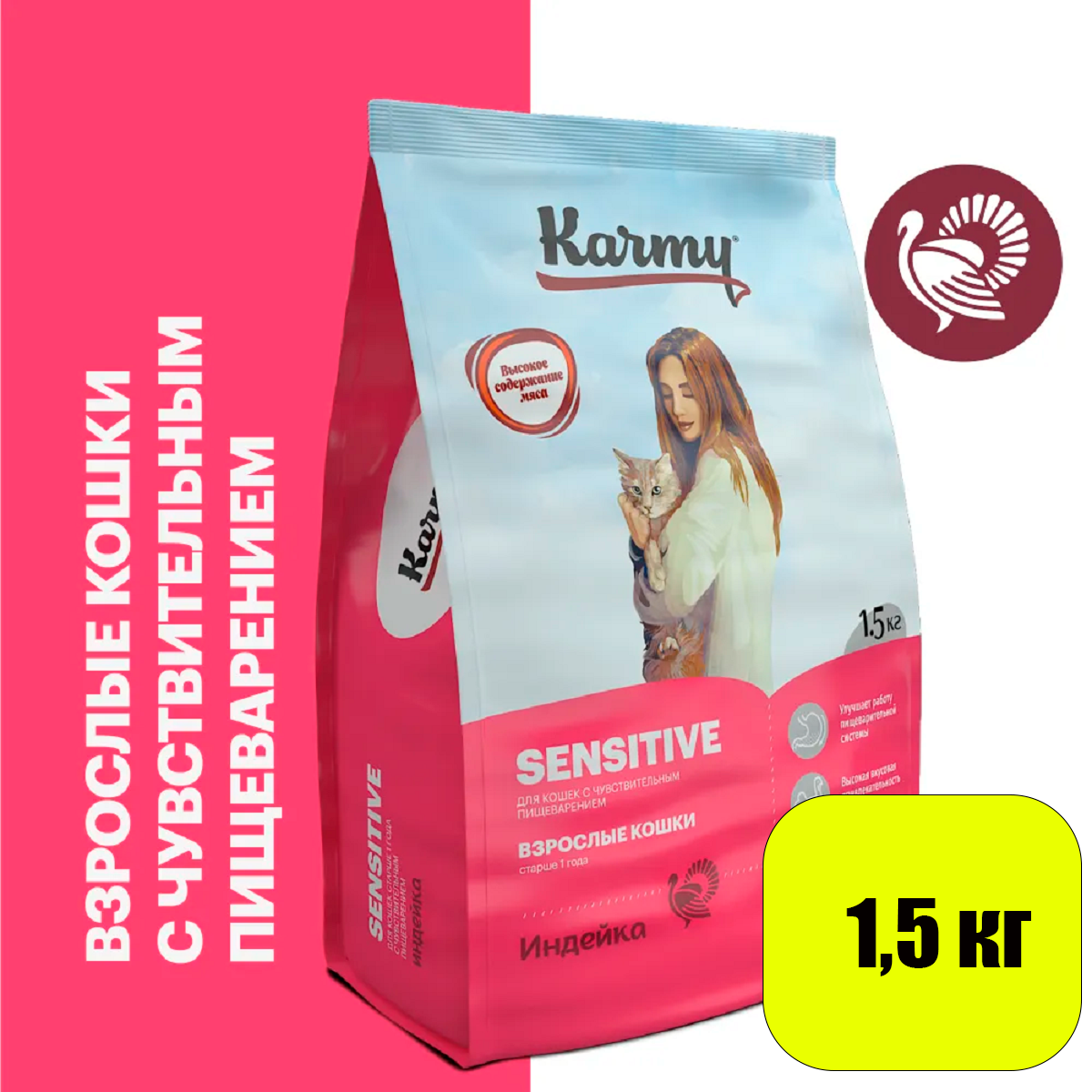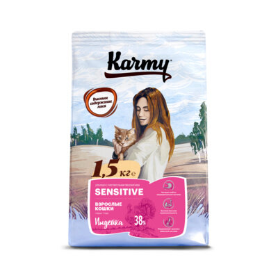 Корм для кошек Karmy 1,5кг чувствительное пищеварение индейка sensitive 4603727045321