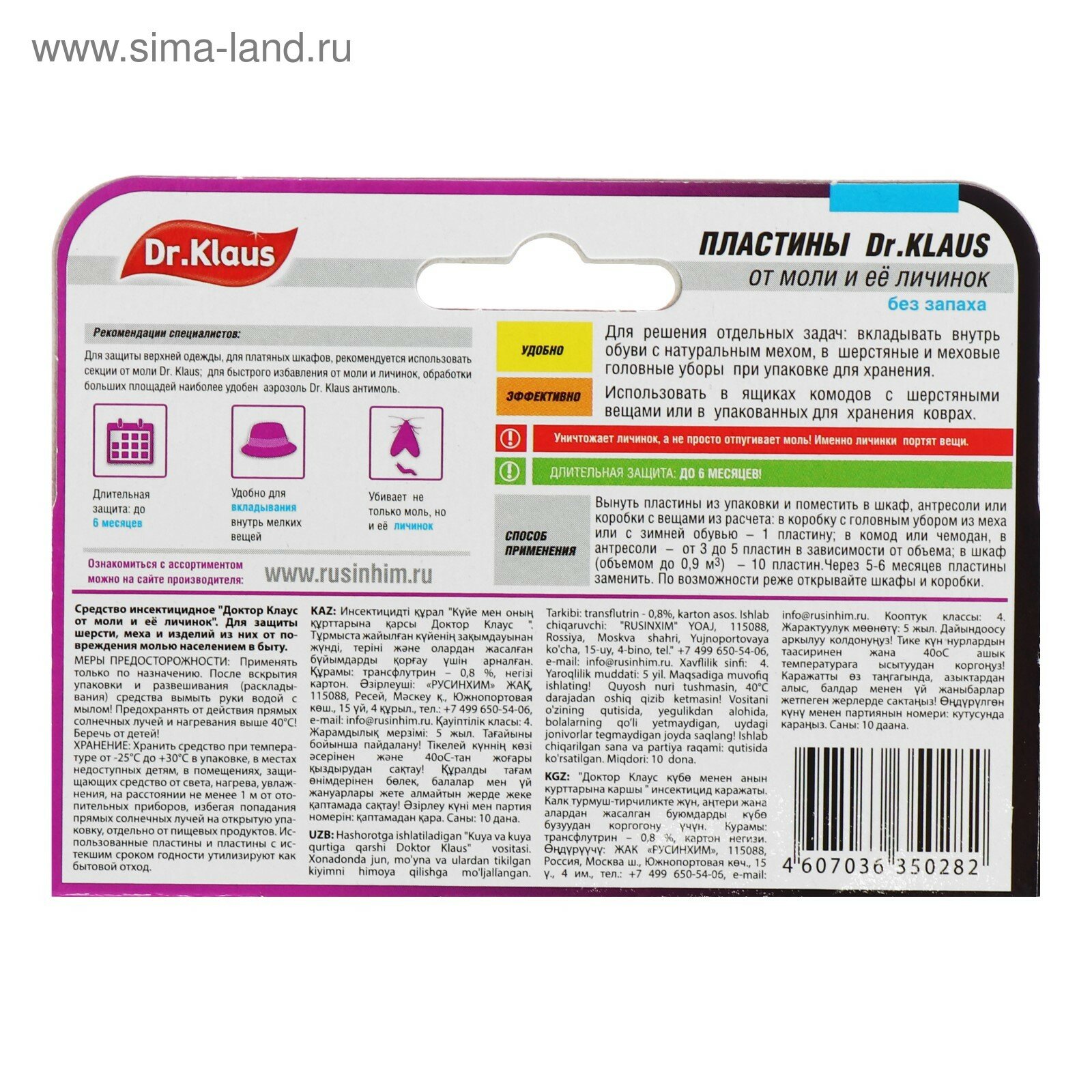 Dr.Klaus Пластины от моли без запаха, 10 пластин интересное: