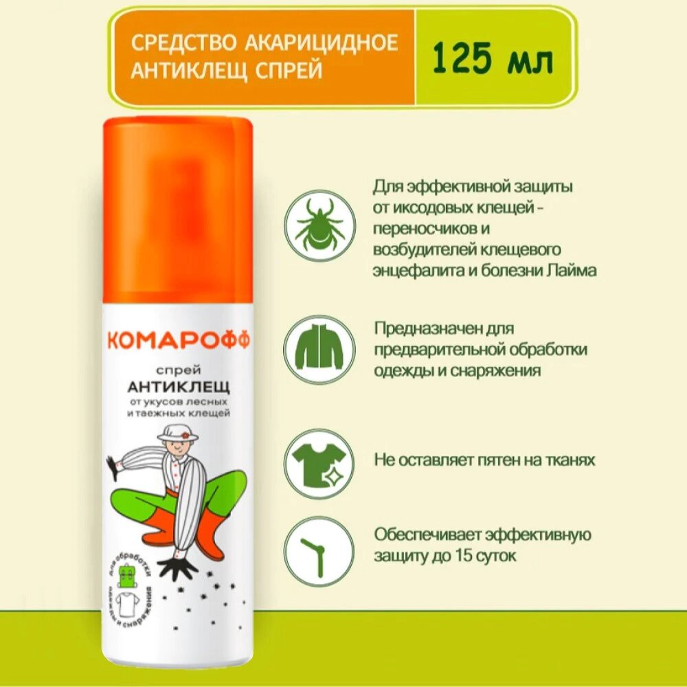 Комарофф Спрей "Комарофф", Антиклещ, от укусов лесных и таежных клещей, 125 мл