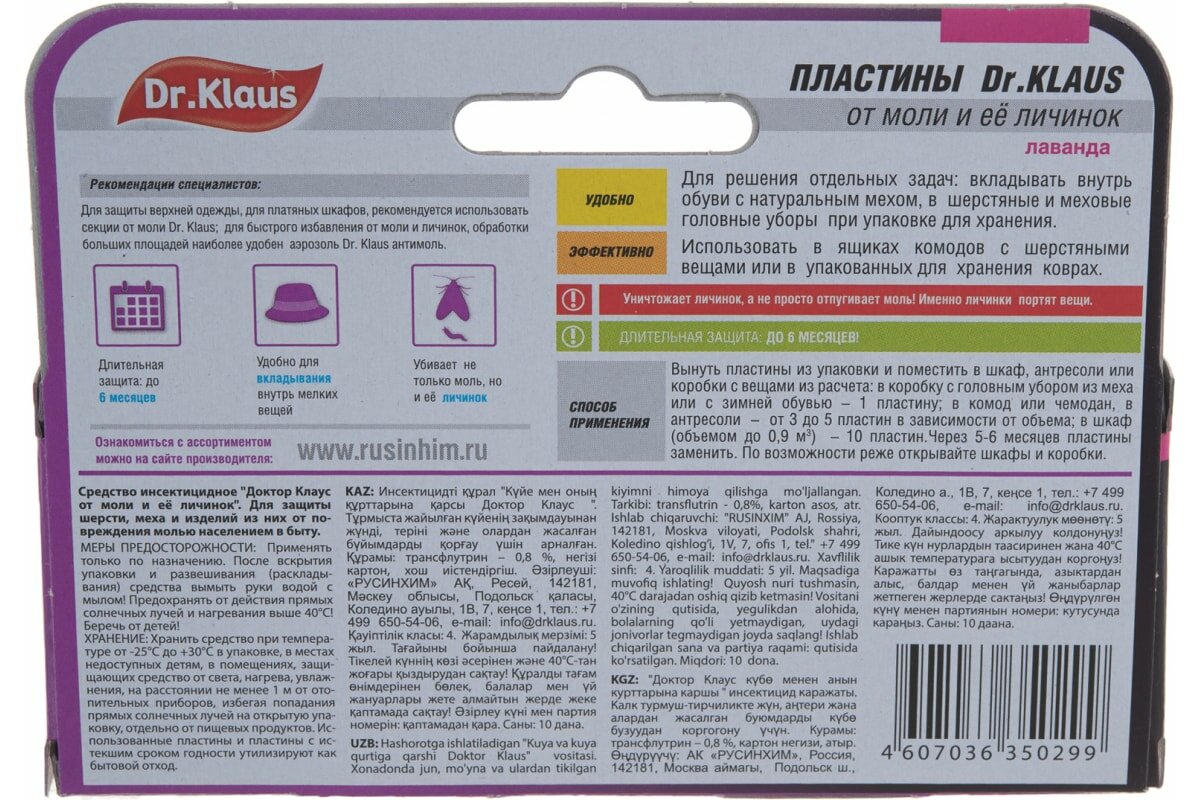 Доктор Клаус Пластины от моли "Dr.Klaus", с ароматом лаванды, 10 шт