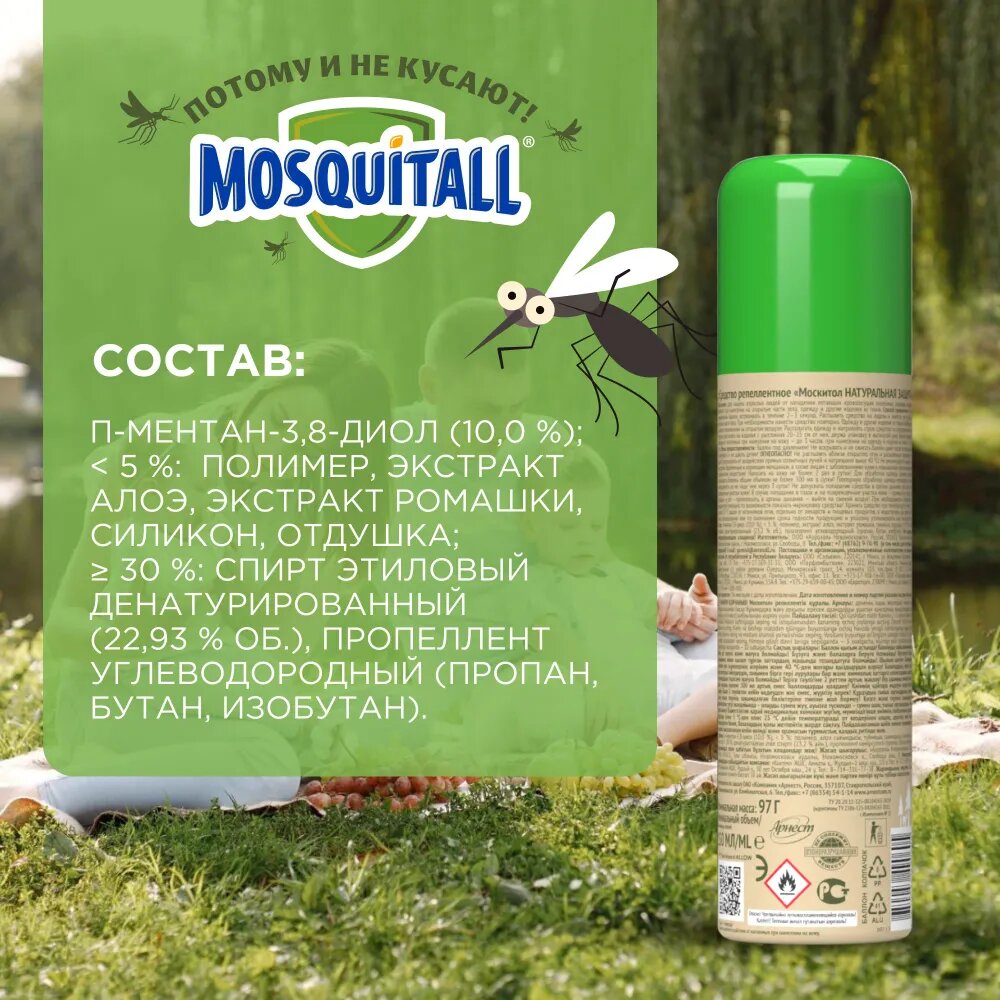 СохранитьАэрозоль Mosquitall Натуральная защита от комаров (экстракты ромашки и алоэ), 150 мл интересное: