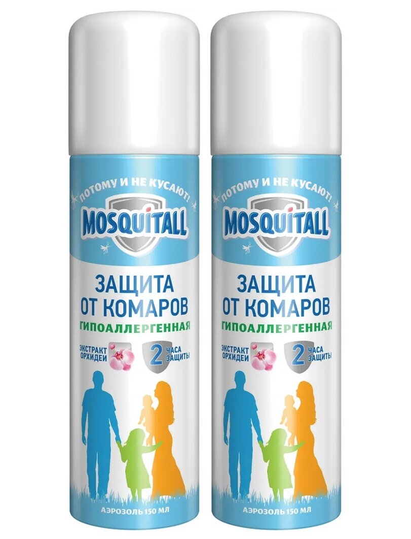 Mosquitall /Аэрозоль Гипоаллергенная защита от комаров, 150 мл, 2 шт