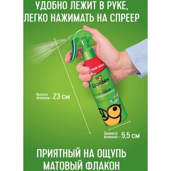 Gardex Спрей от комаров гипоаллергенный Family с алоэ вера на водной основе, 100 мл G-B-515236000